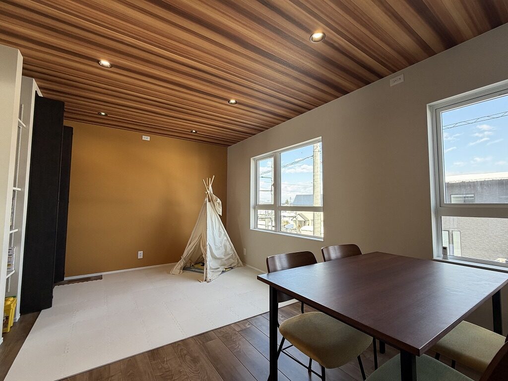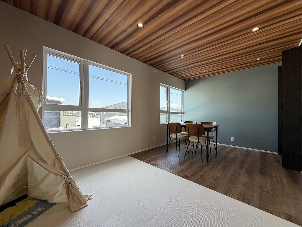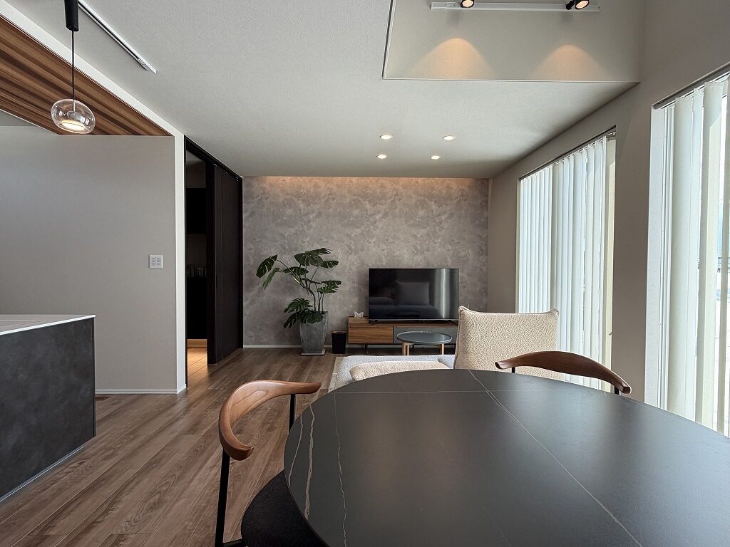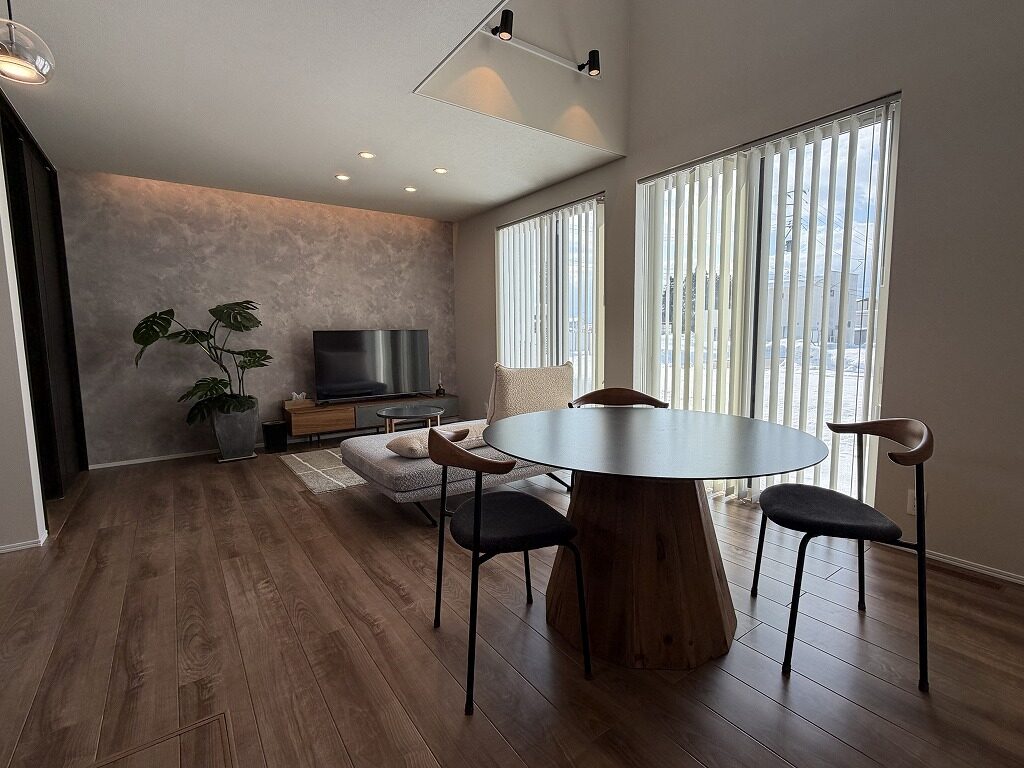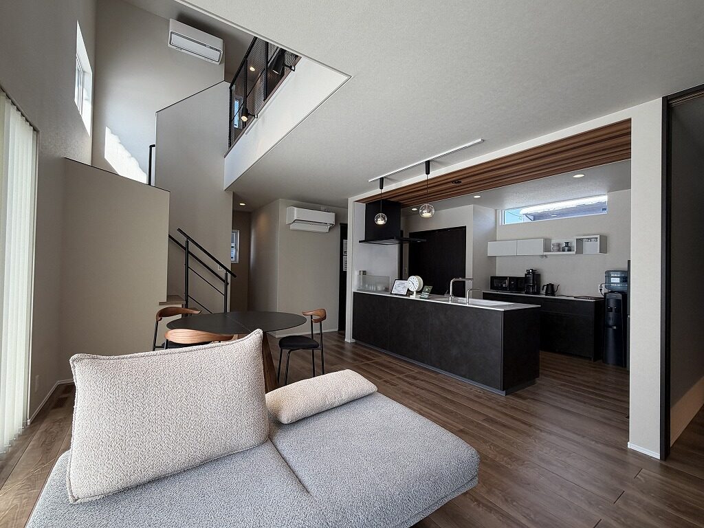 国道13号線近く、中田町分譲地「Livliss中田」内に建つモデルハウスです。 スーパー・ドラッグストア・ホームセンターが揃う利便性の高いエリアで、山形・福島方面へのアクセスも良好です。 建物は、太陽光発電と大容量蓄電池を備えたスマートハウス。 全館空調システムにより、エアコン1台で一年を通して快適にお過ごしいただけます。 間取りは3~4人家族にちょうど良い3LDK。吹抜けのある明るく開放的なLDKが、1階と2階をゆるやかにつなげ、家のどこにいても家族の気配を感じられます。 集中した水回りと回遊できるキッチンで、日々の家事もスムーズに。内装や照明計画にもモデルハウスならではのこだわりが随所に見られます。 インナーガレージやゆったりとしたバルコニー、ライフスタイルに合わせて仕切れるお部屋も備えた設計で、家族の成長と共に長く快適に暮らしていただける住まいです。 外構まで整えられているのも嬉しいポイントです。