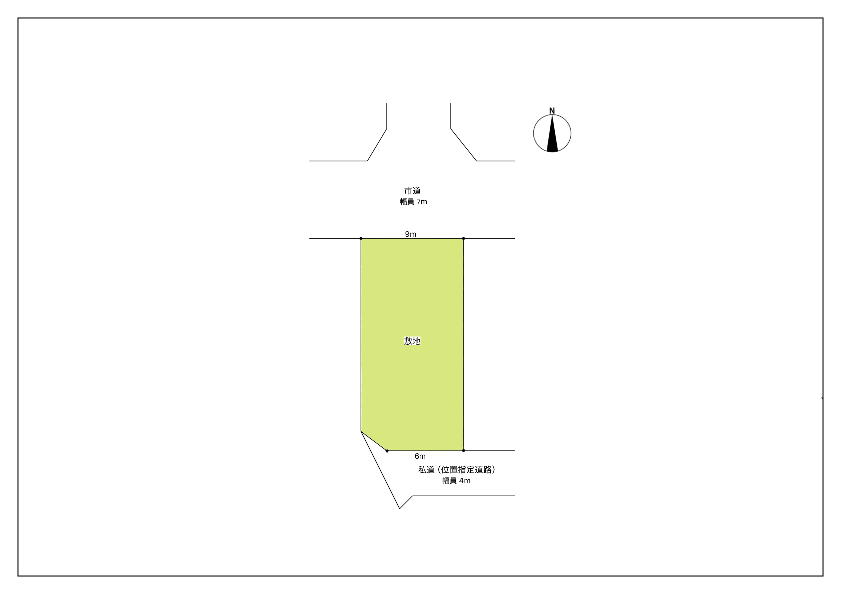 接道北側 公道7m 南側 私道(位置指定道路)4m