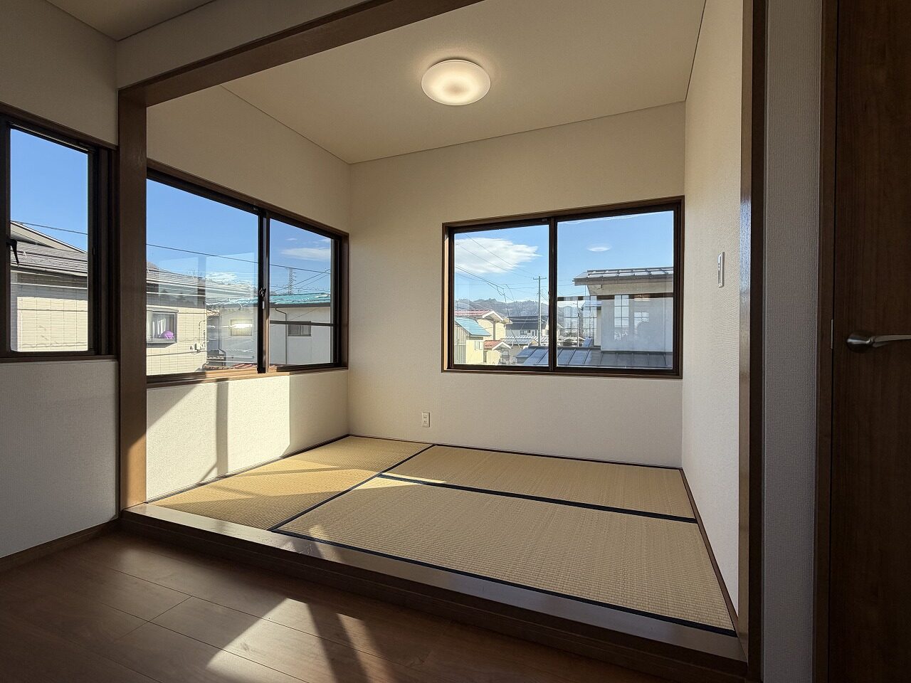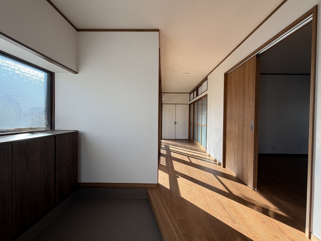 4LDKの3~4人家族での暮らしにちょうどよい住まいです。 1階にはLDKのほか、洋室と和室の2部屋を配置。生活スタイルや家族構成に合わせて、寝室や書斎、来客用など、柔軟な使い方ができそうです。 玄関ホールから続く広縁は、南からの陽がたっぷりと入る心地よい空間。窓の外の景色を眺めながら、ほっと一息つける場所です。 2階の洋室には、3帖の小上がりタタミコーナーが併設されています。洗濯物をたたんだり、アイロンがけをしたりと家事スペースとしてはもちろん、読書や昼寝など、くつろぎの場としても活躍してくれそうです。 クロスの張替えや水回り設備の入替等、リフォーム工事も完了しており、すぐに新しい暮らしを始めていただけます。 ※こちらの物件がある住宅街には、他に2件の戸建物件があります。是非ご一緒にご見学ください。