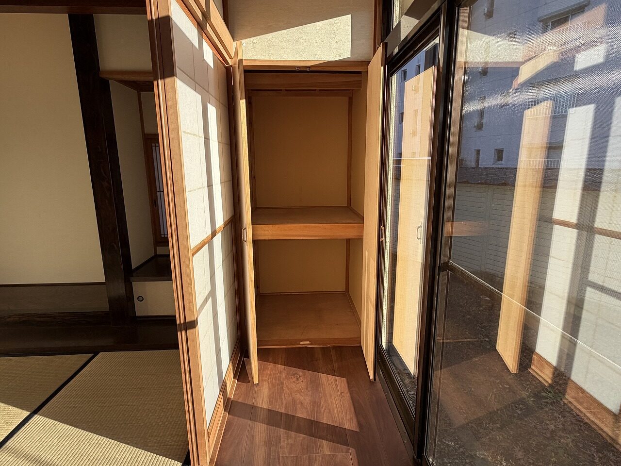 通町北部、県道232号線そばの落ち着いた場所に建つ住宅です。 建物の内外装やお庭の佇まいに趣を感じられます。また、その趣は大切に残しながら、内外装を整え、水回り設備を新設するなどのリフォームが施されており、見た目の味わいと、これから長く安心して住める住まいとしての機能性、その両方がバランスよく備わっています。 1階南西にある広縁は、窓の先に庭を望む心地よい空間。備え付けの書棚があり、光の入る広縁でゆっくりと読書などを楽しめそうです。 各居室に収納があり、さらに大きめの納戸が2ヶ所。日常使いから季節物まで、収納にも困りません。 徒歩3分圏内にドラッグストアやコンビニがあり、スーパーへは車で2分ほど。JR米沢駅へのアクセスも良く、静かな環境と利便性をあわせ持った立地です。