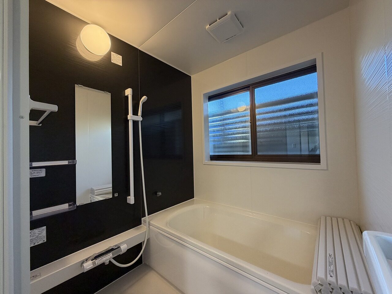 設備公営水道、浄化槽排水、個別LPガス、システムキッチン、ユニットバス、洗浄便座、追炊き給湯、トイレ2ヶ所、テレビドアホン、シューズボックス、LED照明、火災警報器(報知機)、バルコニー、勝手口物置、瑕疵保証付等