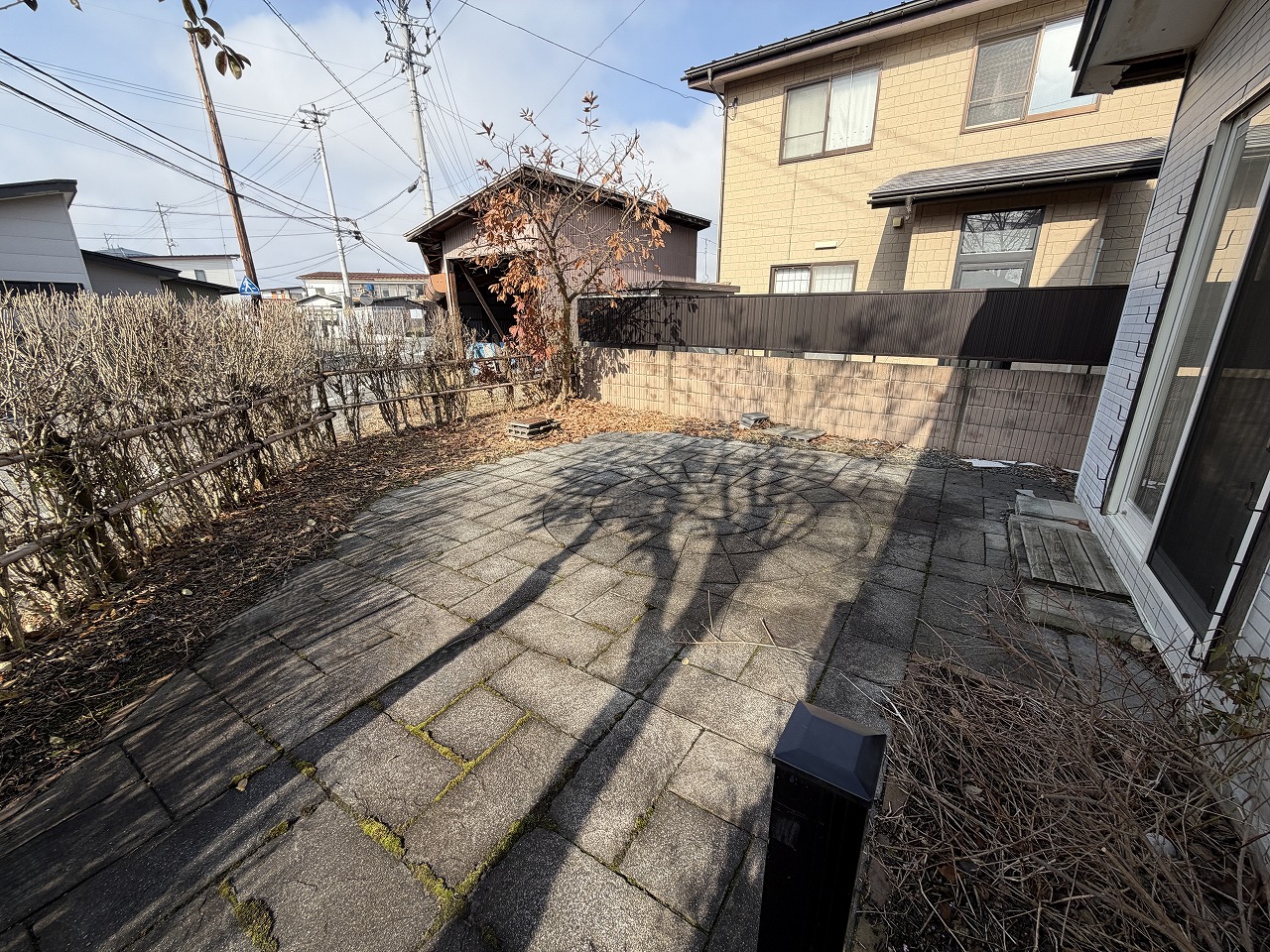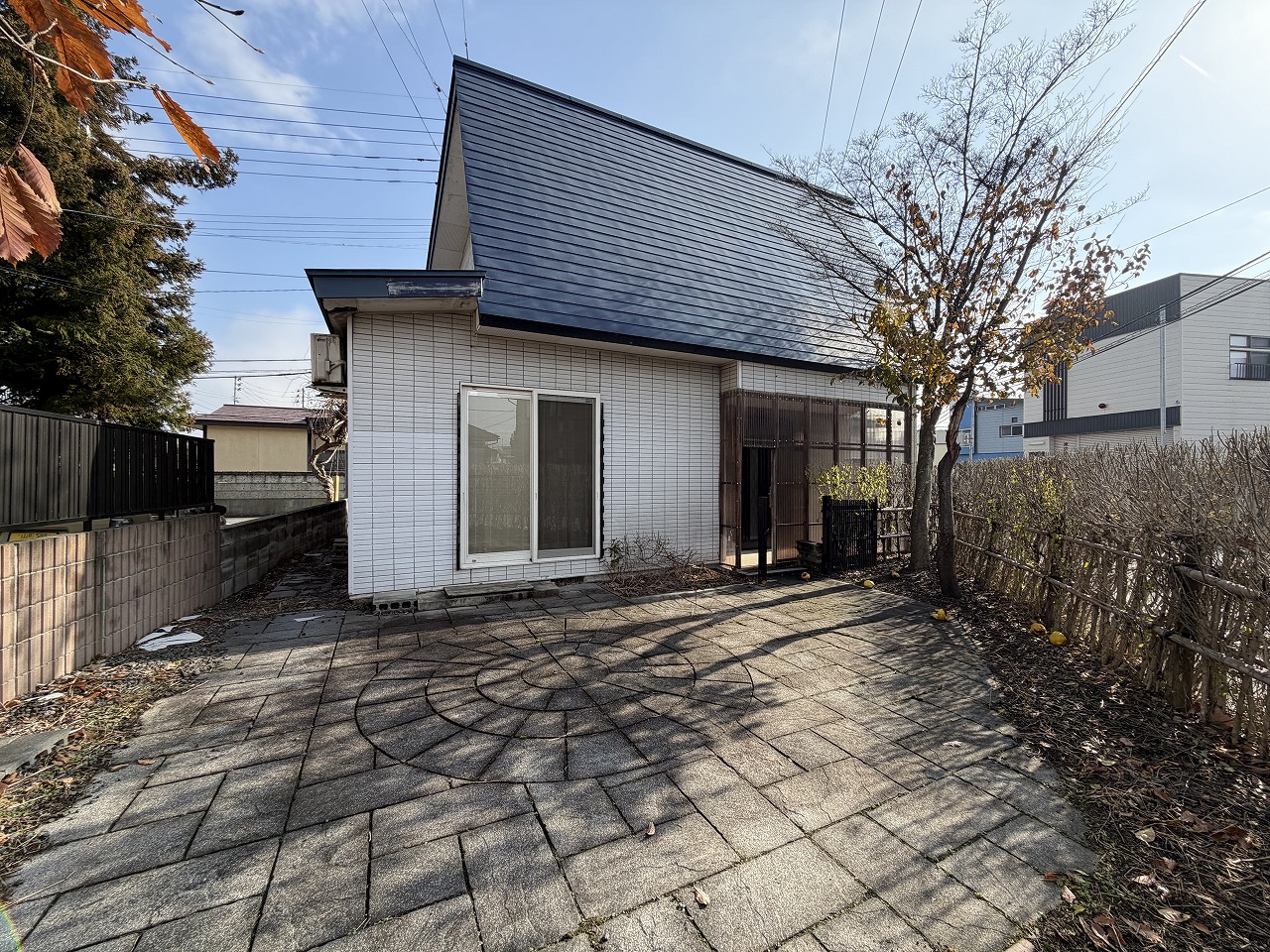 57坪のコンパクトな敷地に、インナーガレージ付きの建物と庭がバランスよく配置された住まいです。白い外壁が、すっきりとした印象を与えてくれます。 25帖の広々としたLDKは建具で仕切ることができ、来客時にキッチンを見せたくない場合などにも便利。暮らし方に合わせて空間の表情を変えられるつくりです。 2階には洋室2部屋のほか、窓のない16帖の部屋があり、シアタールームや演奏室など、趣味室としてお使いいただけます。 石畳が敷かれた庭のテラスは、椅子とテーブルを置いて、ゆっくりとお茶を楽しみたくなる心地よい空間。屋外の時間も、暮らしの一部として楽しめそうです。 米沢駅や郵便局までは徒歩8分、スーパーへは徒歩3分。日々の生活にうれしい利便性も備えた立地です。 ※ガレージに入る車のサイズは制限があります。ご見学の際、お確かめください。