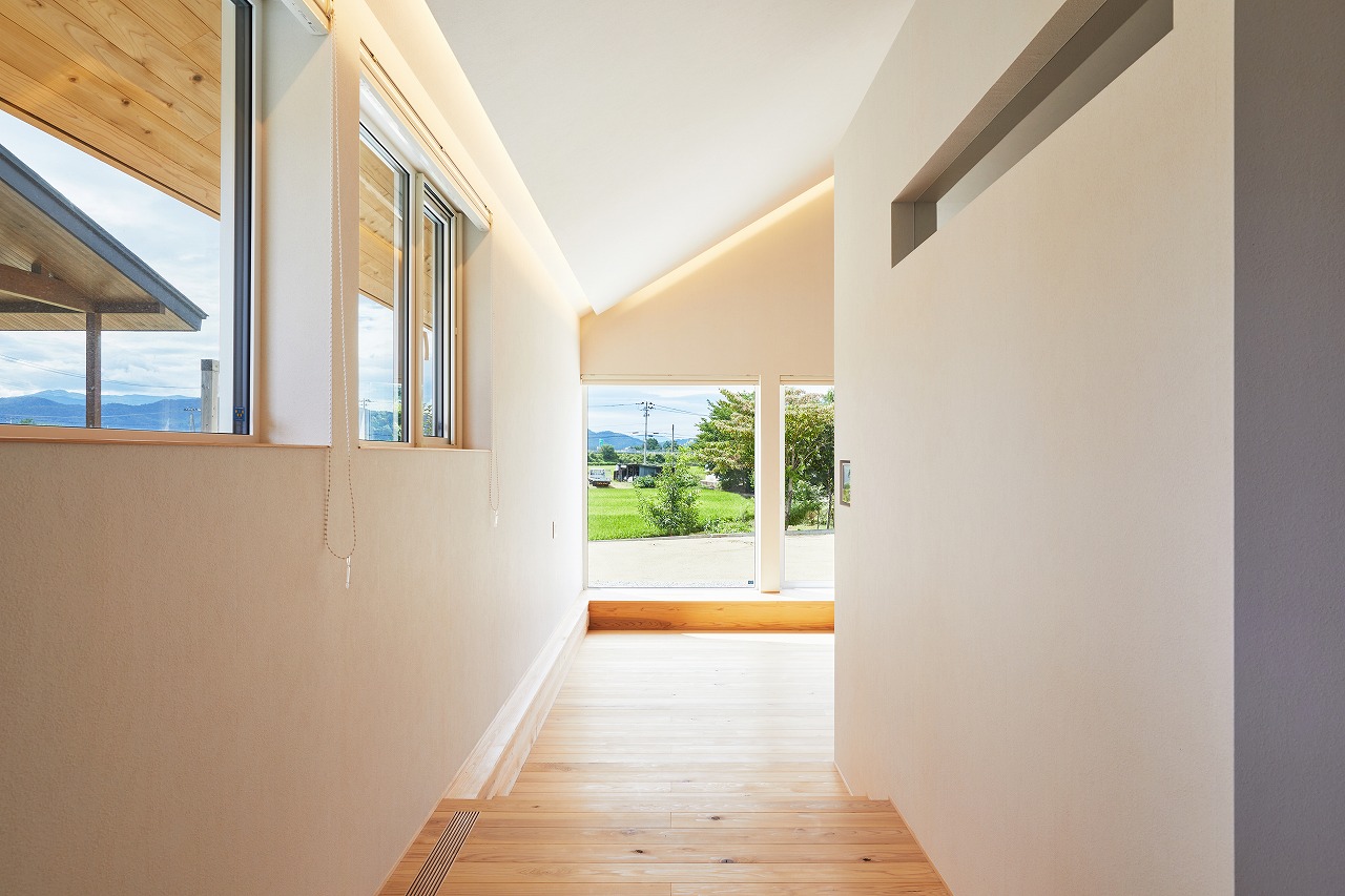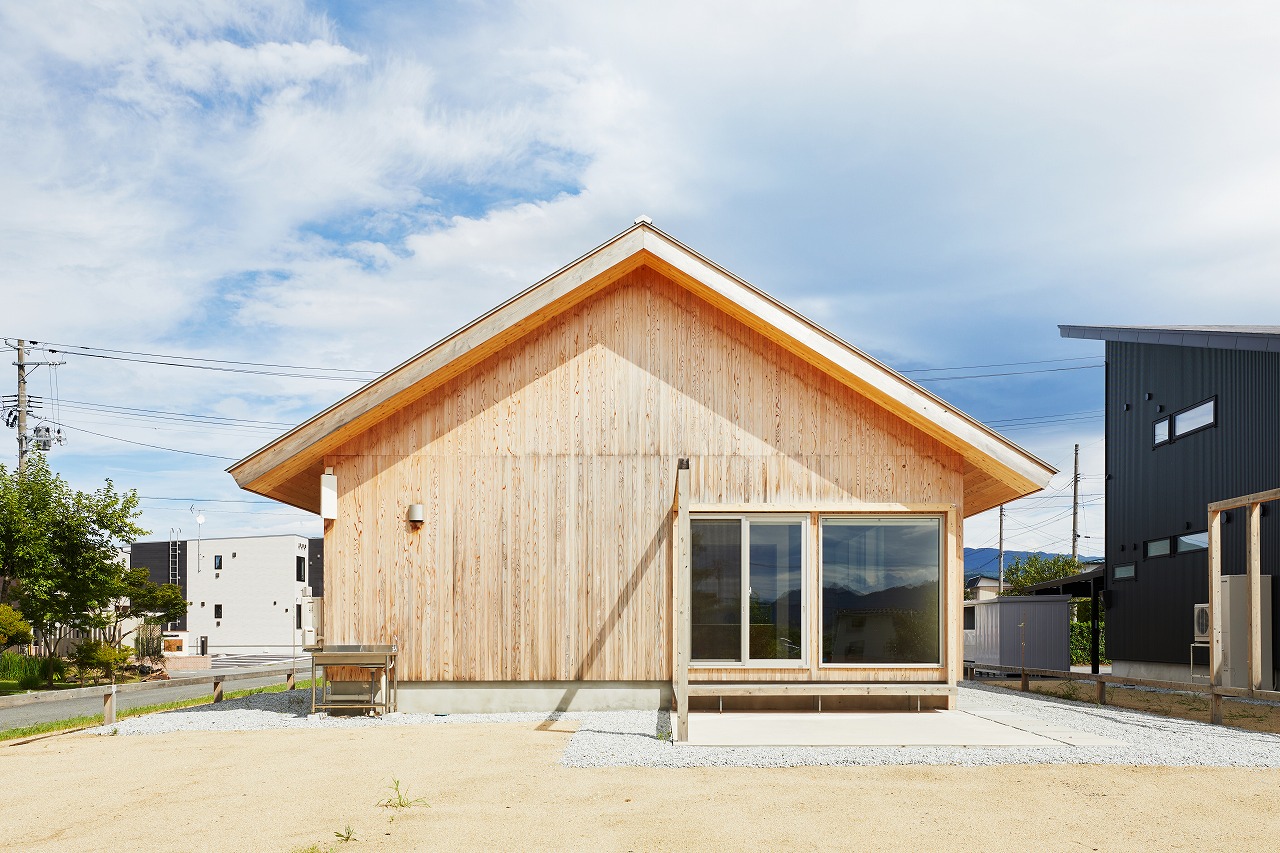 万世町桑山地内、188坪のゆとりある敷地に建つ平屋住宅です。 少人数での暮らしにちょうどよく、敷地の広さと建物のサイズ感のバランスが心地よい住まいです。 建物には米沢杉を使用し、天然木ならではのやわらかなぬくもりと木の香りに包まれます。 米沢の厳しい寒暖差にも対応した高気密・高断熱仕様で、光熱費を抑えながら一年を通して快適にお過ごしいただけます。 家の中心に向かって伸びる勾配天井と、仕切りのない回遊動線が、空間全体をゆるやかにつなげ、光と風も通します。 西に開けた立地を活かし、リビング西面に設けた大きな窓からは、庭越しに田んぼと山の風景が広がり、季節の移ろいを身近に感じられます。 窓際には造作のベンチもあり、景色を眺めながらゆったりと過ごせる居心地の良いリビングです。 造作キッチンや床下エアコン、寒冷地仕様のフル暖エアコンなど、設備面も充実。 全室カーテン付きなのも、すぐに新しい暮らしを始められるうれしいポイントです。